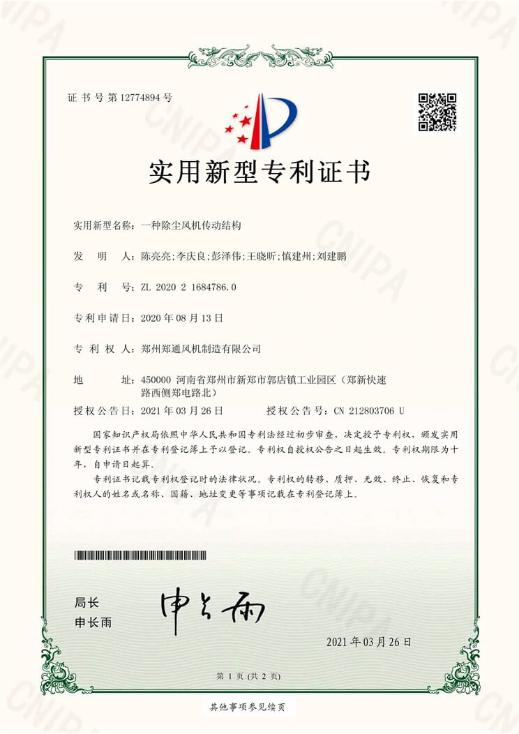 鄭通風機主要產(chǎn)品包括:高壓風機、不銹鋼風機、消防排煙風機、防腐防爆風機、廚房排油煙風機、玻璃鋼風機、鍋爐引風機、軸流風機、柜式離心風機、鍋爐引風機,產(chǎn)品通過ISO9001、ISO14001、ISO45001國際標準化組織制定的質量管理體系認證,部分產(chǎn)品通過了3C認證和國家防爆電器產(chǎn)品質量監(jiān)督檢驗中心認證。